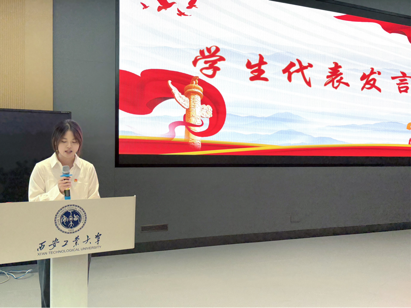 忠诚社区杨卓欣作为学生代表分享成长感悟。她表示,团学骨干成长训练营兼具理论深度、实践温度与成长厚度,理论授课和“四史”知识竞赛筑牢思想底座、学长学姐的干货分享传授工作技巧、红色教育基地实践与户外素质拓展让同学们深刻理解责任与凝聚的意义。她号召大家将把所学转化为实际行动,在日常学习工作生活中积极发挥模范带头作用,让青春在挺膺担当中绽放光彩。